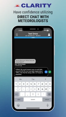 Clarity by BAMWX.com is the ultimate mix of innovative technology and the direct human communication that you need to make smart and efficient decisions. With Clarity, we will change the way you receive and interpret weather forecasts with critical forecast insights for your location, directly from our team of meteorologists. Why Clarity? Because we understand that free sources of weather information are not accurate, lack specifics, frequently change and don’t provide the radar data you need. If you are making business decisions related to weather, Clarity will help you save critical time, money, resources and most importantly help keep you safe.
