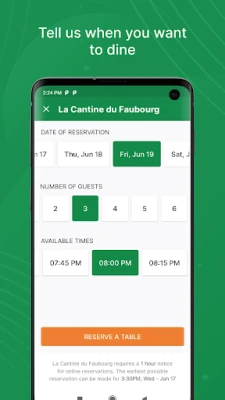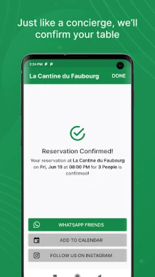- Instantly confirmed reservations at the best fine-dining restaurants. New restaurants added every week. Select when and where you want to dine and eat confirms your booking through the app.