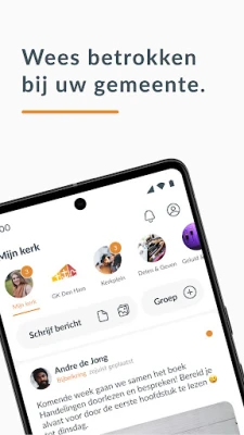 Dankzij onze unieke groepenstructuur helpen wij kerken beter te communiceren. Met de hele gemeenschap, maar ook onderling. U kunt zelf groepen toevoegen en mensen daarvoor uitnodigen. Een slimme timeline zorgt er voor dat iedere gebruiker persoonlijke en relevante informatie ziet.