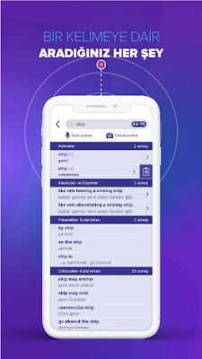 - Kelimeleri yazarak,ses ile yada resimden tarama ile arayabilirsiniz