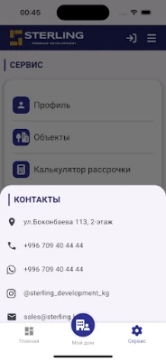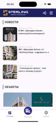 С помощью приложения можно получать новости и информационные материалы об объектах строительной компании Sterling