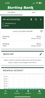 Sterling Bank’s Mobile Banking App allows you to access your accounts using your existing Sterling Bank Online username and password. Self-register for Sterling Bank’s Online Banking through the mobile app, visit us at www.sterlingbank.ws, or contact one of our branches. If you need additional help with access to online and mobile banking contact us at 800-924-4817.