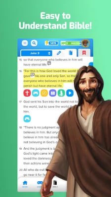 • Earn XP points to level up your character as you engage with Bible game content.
