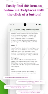 • Price finder by picture: Simply snap a photo or use an existing image to find the market value for anything, whether from a yard sale, garage sale, or flea market.